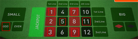 - Pemasangan Ganjil - Genap atau Besar - Kecil atau Merah - Hitam Sebesar pasangan : Rp 10.000